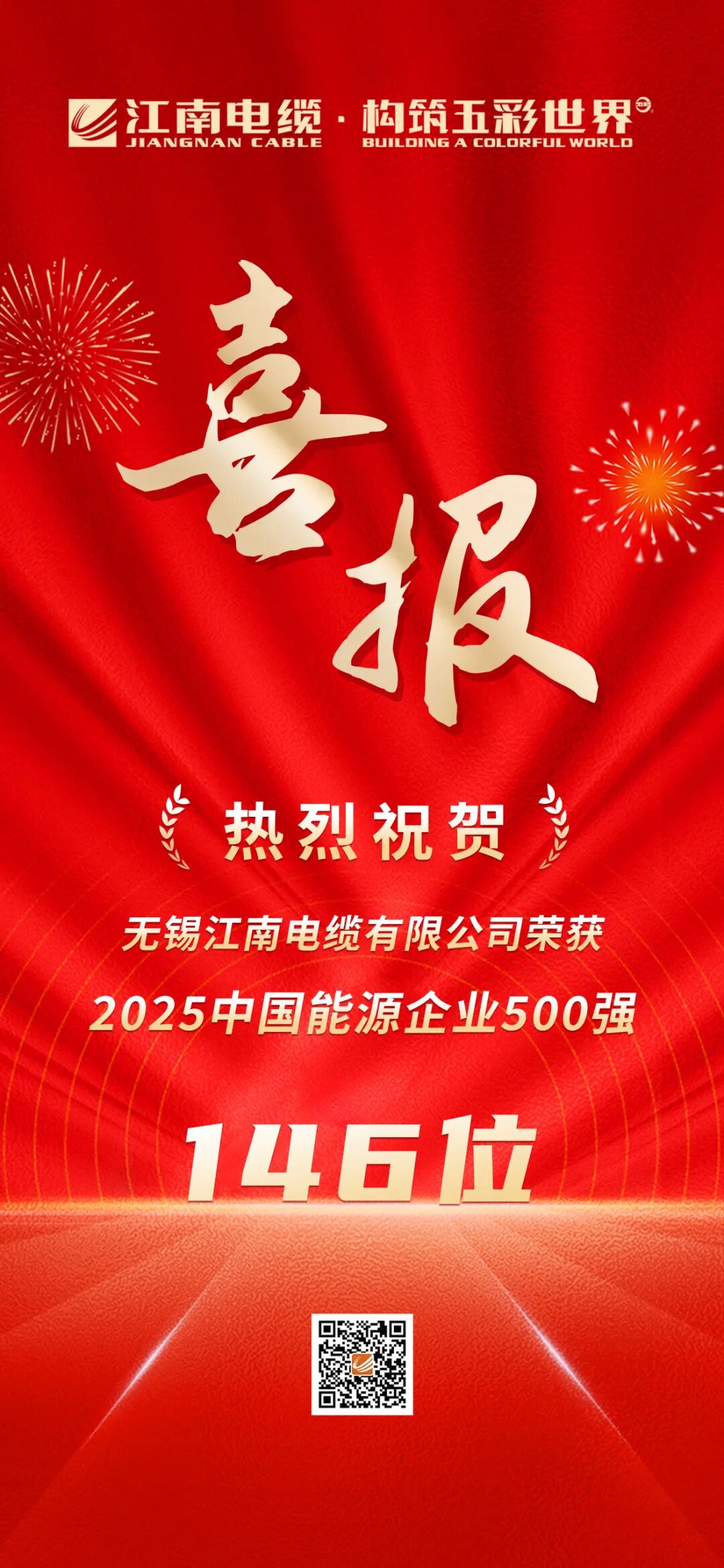 【喜報】江南電纜榮獲2025中國能源企業(yè)500強(qiáng)